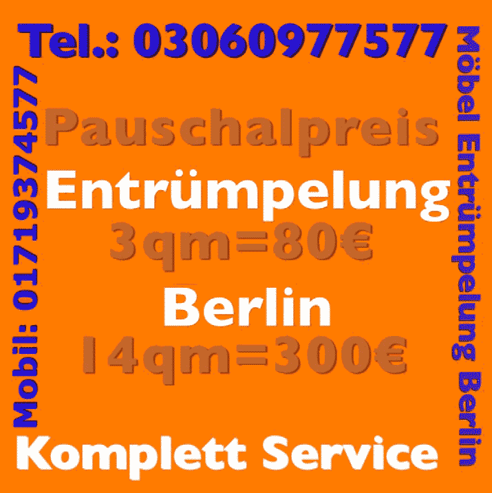 Aufgrund unserer langjährigen Erfahrung, Praxis im Bereich Demontage Möbelabbau Abholung Abtransport privat 03060977577 beauftragt uns inzwischen eine Vielzahl an Kunden dies seit vielen Jahren. Denn wir bieten Wohnungsauflösung zum kleinen Preis. Neben unserem Angebot der kompletten Wohnungsauflösung kostenlos Demontage Möbelabbau Abholung Abtransport privat 03060977577 Berlin24recyclingdienst sorgen wir selbstverständlich auch für den Abtransport die fachgerechte Demontage Möbelabbau Abholung Abtransport sperriger Gegenstände Hausrat aller Art. Sie benötigen Platz für neue Möbel oder planen neue PC-Anlagen oder den Kauf von Elektrogeräten? Wir entsorgen zuvor schnell komfortabel Ihre alten Gebrauchsgegenstände Elektrogeräte wie ausrangierte Fernseher, defekte Computer oder Telefone, Handys Smatphones. Damit schaffen Sperrmüllabholung schnell, sauber zum pauschalen Preis Raum für Ihre Neuanschaffungen. Mit uns an der Seite wird die Möbel Demontage Möbelabbau Abholung Abtransport in privat 03060977577 zum Kinderspiel. Mobiliar, Gegenstände aus Holz, Sperrmüll Altmetall, aber auch alte Sofas, Pappe, Umzugskartons, Papier Verpackungen Zeitungen entrümpeln wir in besonders kurzer Zeit und garantieren praktisch konkurrenzlose Preise.